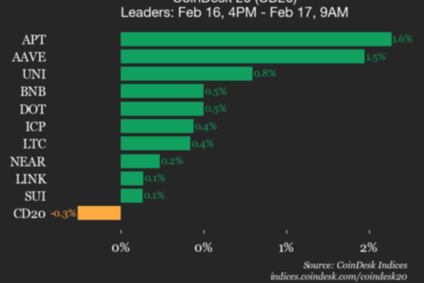 يقدم موقع CoinDesk Indices تحديثه اليومي للسوق، مسلطًا الضوء على أداء الشركات الرائدة والمتأخرة في مؤشر CoinDesk 20 . يتم تداول CoinDesk 20 حاليًا عند 1979.83، بانخفاض قدره 0.3٪ (-5.15) منذ الساعة 4 مساءً بتوقيت شرق الولايات المتحدة يوم الاثنين. ثلاثة عشر أصلاً من أصل عشرين أصلاً يتم تداولها بأسعار أعلى. القادة: APT (+1.6%) و…