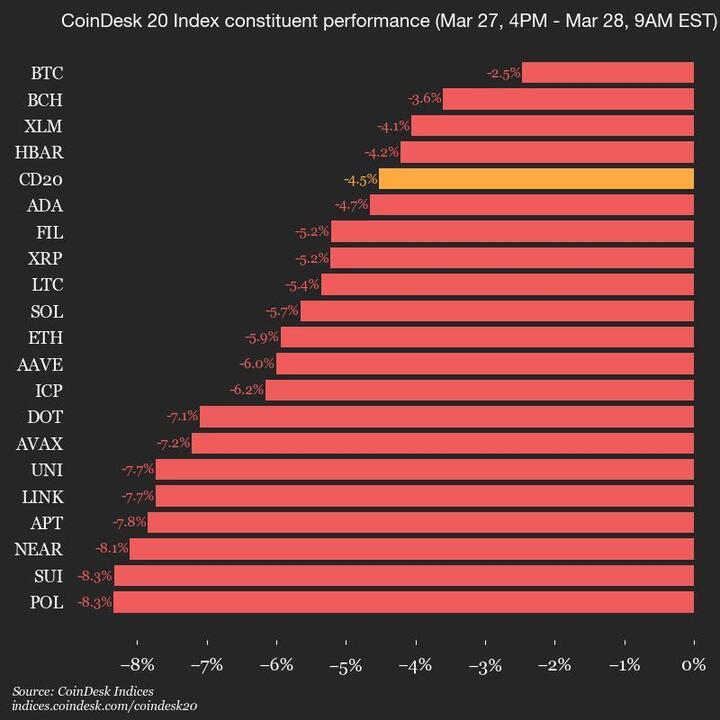 تحديث CoinDesk 20 الساعة 9 صباحًا ليوم 28 مارس 2025: الرسم البياني