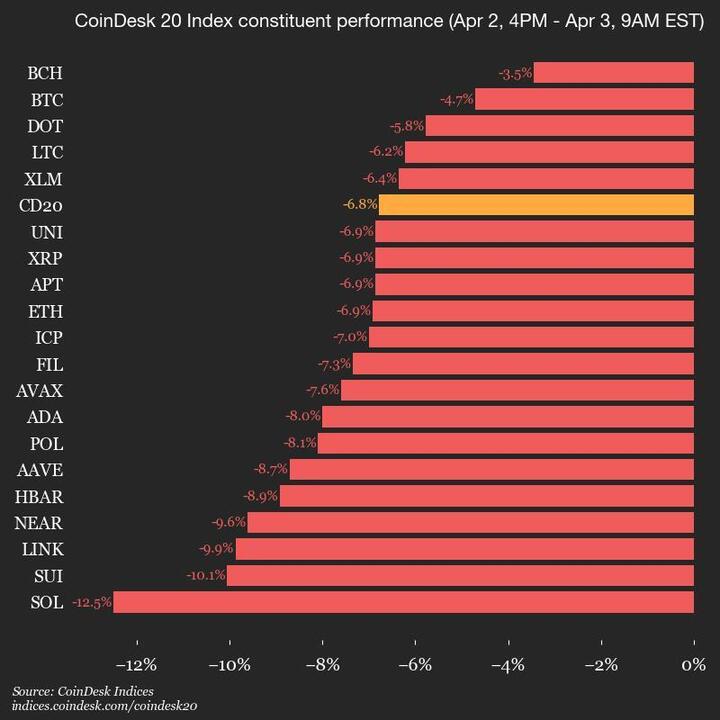 يقدم CoinDesk Indices تحديثه اليومي للسوق، مسلطًا الضوء على أداء القادة والمتخلفين في مؤشر CoinDesk 20 .