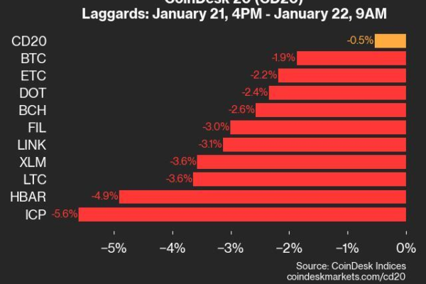 تحديث أداء CoinDesk 20: ICP ينخفض بنسبة 5.6% مع انخفاض المؤشر عن تداولات يوم الثلاثاء