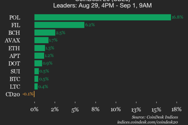 الرمز الأصلي لـ Polygon (بول) ، وهي شبكة لتوسيع نطاق الإيثريوم، قادت المكاسب خلال عطلة نهاية الأسبوع في مؤشر CoinDesk 20 Index القياسي للعملات المشفرة في السوق الواسعة . ارتفعت عملة POL بنسبة 16% من يوم الجمعة حتى صباح يوم الاثنين، متجاوزةً 0.29 دولار أمريكي لأول مرة منذ أوائل مارس، وفقًا لبيانات CoinDesk. ومؤخرًا، تراجعت…