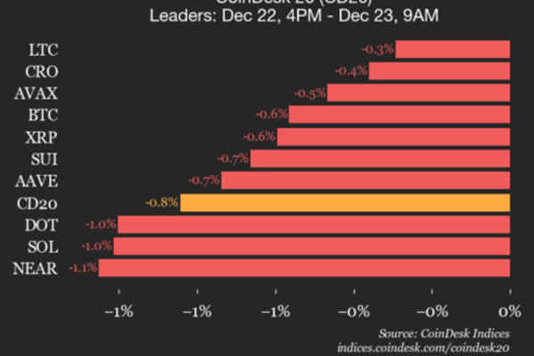 تحديث أداء CoinDesk 20: انخفاض Uniswap بنسبة 3.7% مع تراجع جميع مكونات المؤشر