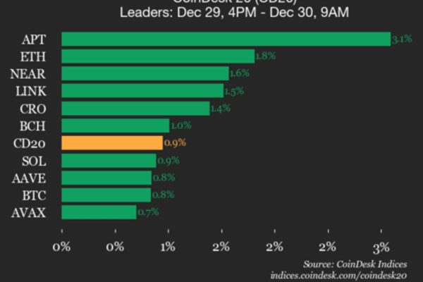 تحديث أداء CoinDesk 20: ارتفاع إيثيريوم (ETH) بنسبة 1.8% مع ارتفاع المؤشر