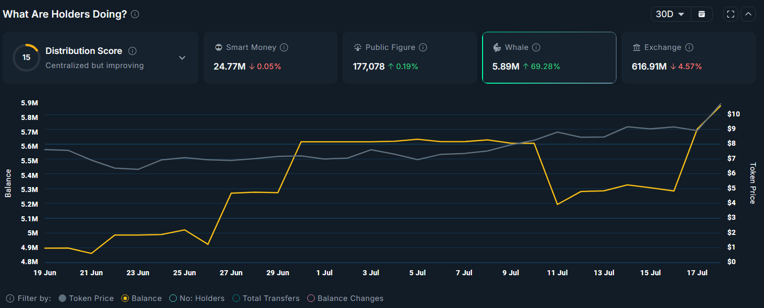 تكشف بيانات إضافية من Nansen أن الحيتان تمتلك الآن 5.83 مليون رمز UNI، بزيادة قدرها 67.8% خلال الأيام الثلاثين الماضية.